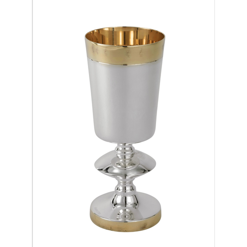 גביע מכסף טהור 925 דגם חלק פס זהב . מתאים לקידוש שבת וחג. גובה הכוס: 16 ס"מ . קוטר: 13 ס"מ. משקל 310 גרם