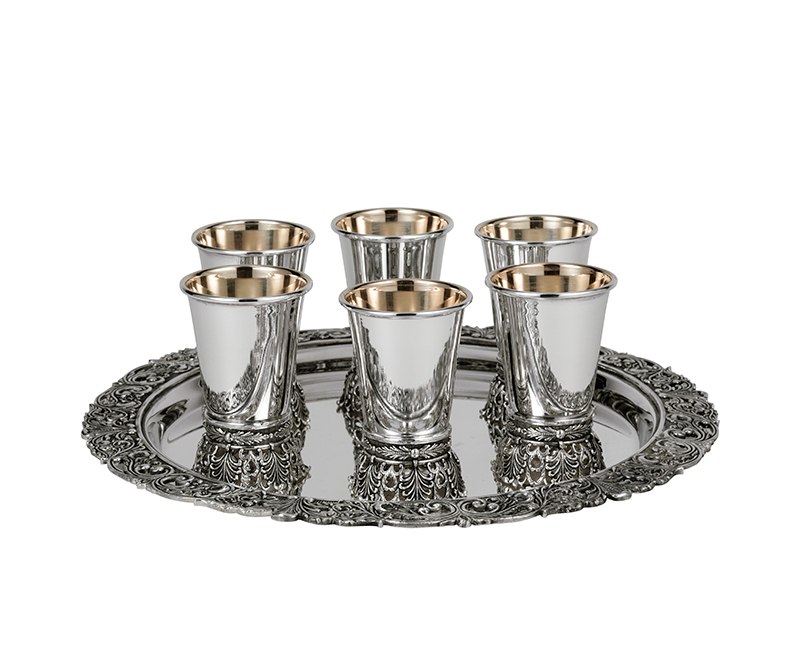 סט שישיית כוסות ליקר על מגש כסף טהור 925 דגם Argento
